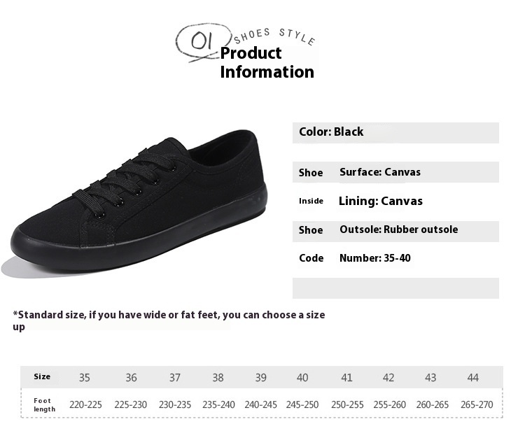 Korean Style All Black Slimming Versatile Pure Breathable Flat Work Shoes