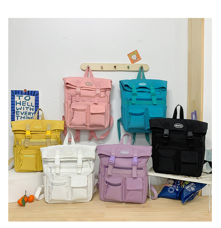 Multi-pocket Backpack Women Fashion Buckle Students School Bags