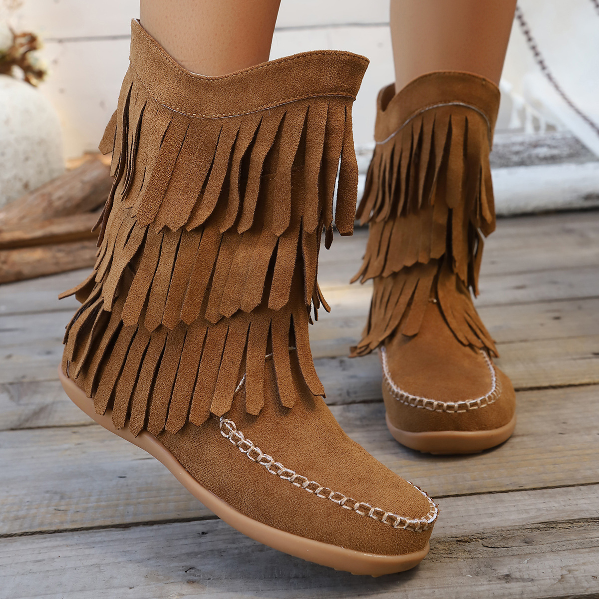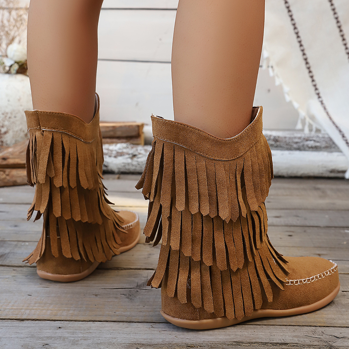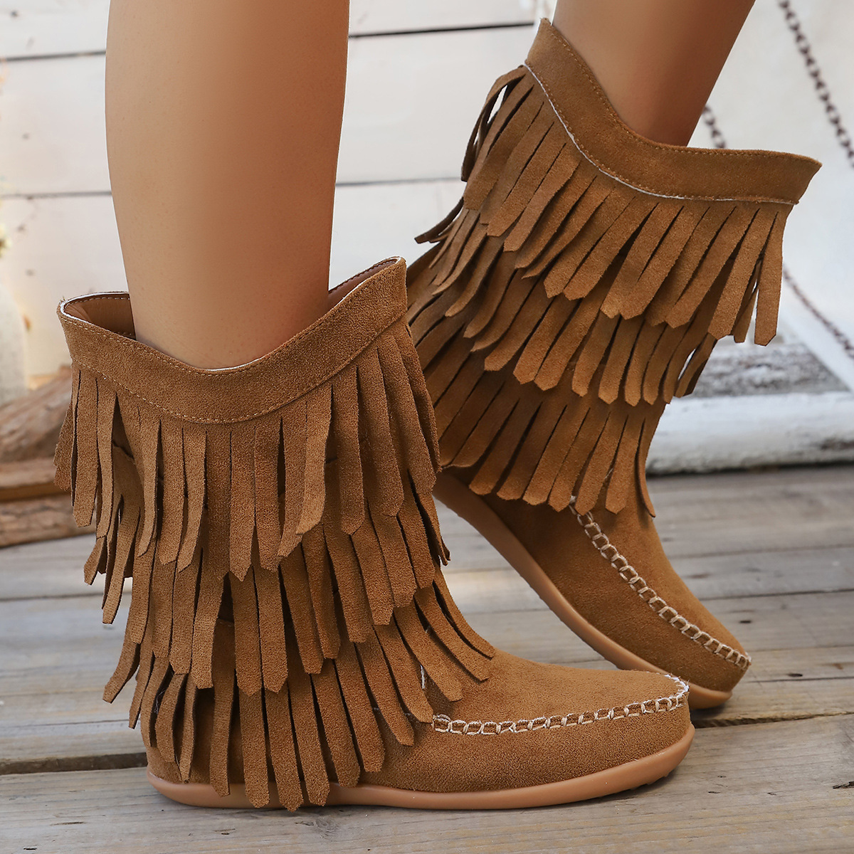 Plus Size Retro Tassel Mid-calf Heel Martin Boots
